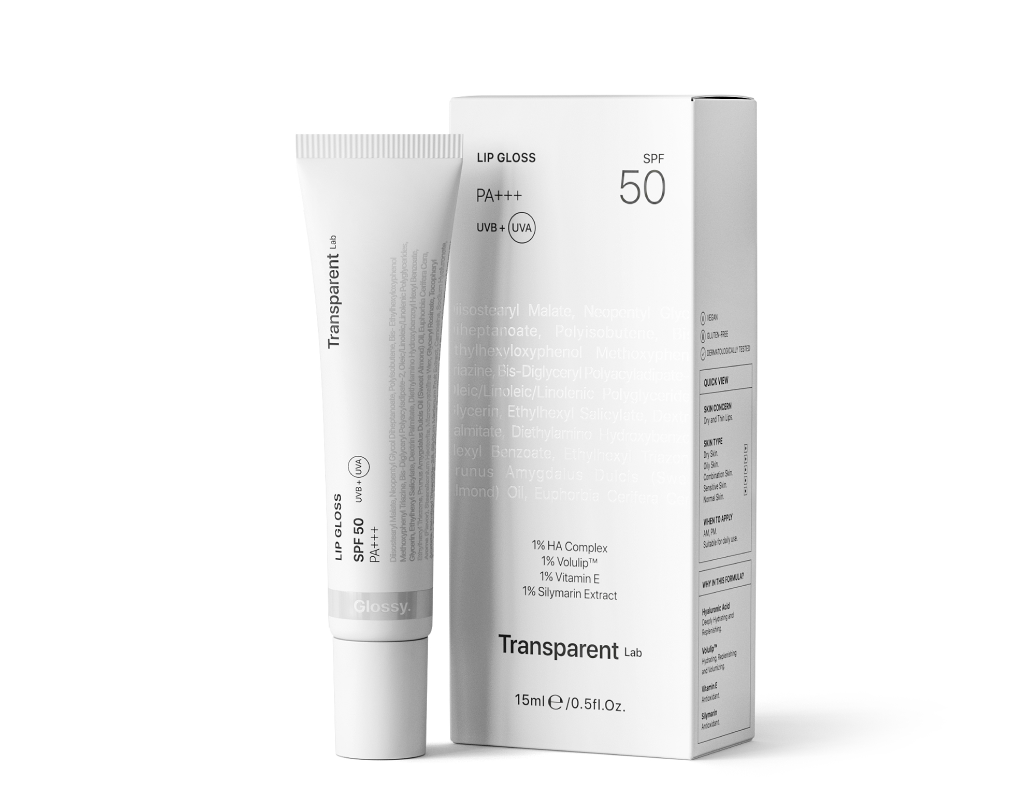 *Outlet Transparent Lab Lip Gloss Glossy SPF50 – nawilżający balsam do ust, 15 ml