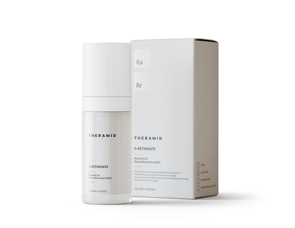 A-RETINOATE charakteryzuje się opatentowanym systemem dostarczania, pozwalającym stworzyć stabilną i wysoce skuteczną formę witaminy A. To przełomowa cząsteczka hybrydowa, utworzona przez połączenie retinolu i kwasu retinowego. Innowacyjna fuzja to zródło niezwykłych efektów bez niepożądanych skutków ubocznych typowych dla kwasu retinowego.