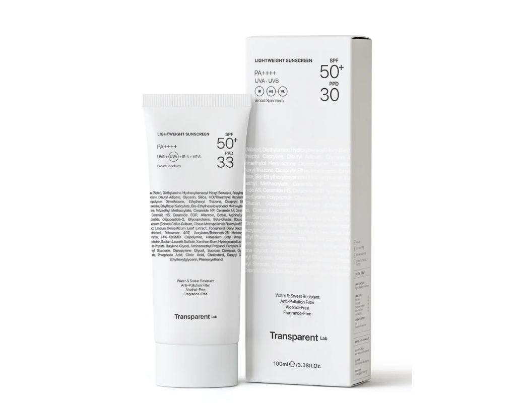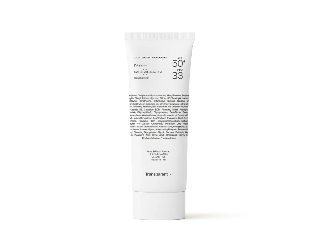 Transparent Lab Lightweight Sunscreen SPF 50+ – lekki krem przeciwsłoneczny do twarzy i ciała, 100 ml