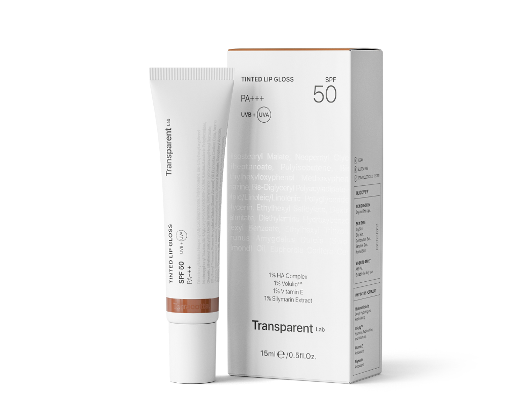 Transparent Lab Lip Gloss Terracota SPF50 – nawilżający balsam do ust, 15 ml