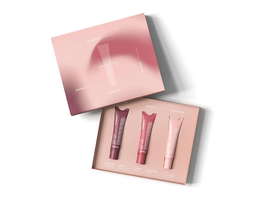 Intens Plum: Neopentyl Glycol, Diheptanoate, Polyisobutene, Bis Ethylhexyloxyphenol Methoxyphenyl Triazine, Diisostearyl Malate, Bis-Diglyceryl Polyacyladipate-2, Oleic/Linoleic/Linolenic Polyglycerides, Glycerin, Ethylhexyl Salicylate, Dextrin Palmitate, Diethylamino Hydroxybenzoyl Hexyl Benzoate, Ethylhexyl Triazone, Caprylic/Capric Triglyceride, Prunus Amygdalus Dulcis (Sweet Almond) Oil, Euphorbia Cerifera Cera, Stearalkonium Hectorite, Microcrystalline Wax, Aroma (Flavor), Aqua (Water), Glyceryl Rosinate, Tocopheryl Acetate, Palmitoyl Tripeptide-38, Silybum Marianum Fruit Extract, Carnosine, Sodium Hyaluronate, Squalene, Portulaca Pilosa Extract, Theobroma Grandiflorum Seed Butter, Astrocaryum Murumuru Seed Butter, Helianthus Annuus (Sunflower) Seed Oil, Octyldodecanol, Cetearyl Ethylhexanoate, C12-15 Alkyl Benzoate, PEG-8 Caprylic/Capric Glycerides, Glycine Soja (Soybean) Oil, Octyldodeceth-25, Propylene Carbonate, Stevioside, Tocopherol, Ricinus Communis (Castor) Seed Oil, Sorbitan Isostearate, Beta-Sitosterol, Lecithin, Magnesium Hydroxide, Aluminum Hydroxide, Sorbitan Oleate, Stearic Acid, Decylene Glycol, Propylene Glycol, Sucrose Cocoate, Barium Sulfate, Polyhydroxystearic Acid, Phenoxyethanol, Vanillin, CI 77499 (Iron Oxides), CI 15850 (Red 57), CI 77492 (Iron Oxides), CI 77491 (Iron Oxides)